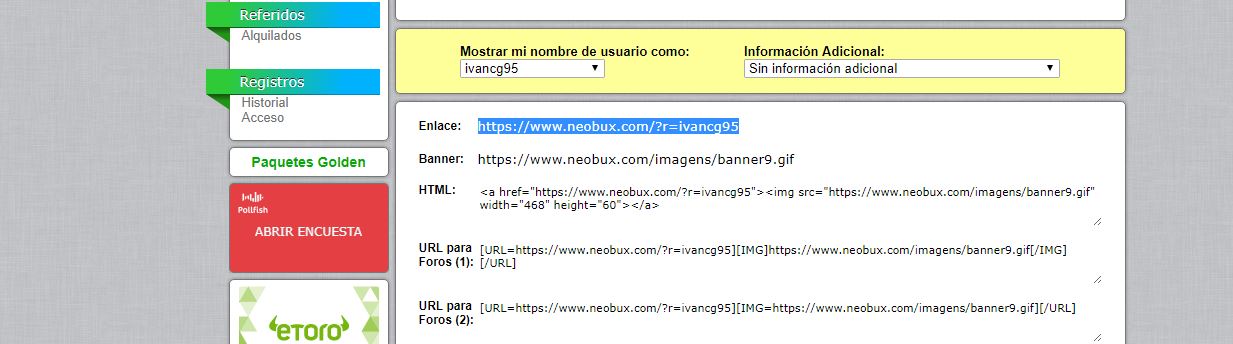 2. Referidos alquilados: Son personas que se registran en neobux desde un enlace general y no están afiliadas a nadie.