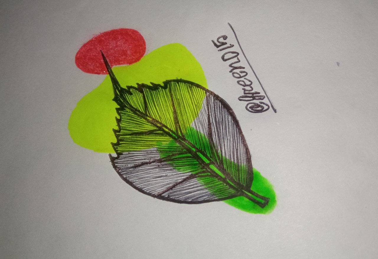 এরপর পাতার মধ্যে শিরা একে নিলাম।