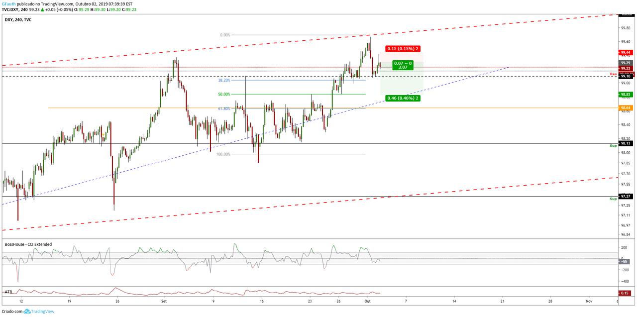 A força compradora minguou e definiu bem isso no pivot de 99,40 do 60m. A confirmação agressiva vem com o CCI mantendo-se em zona de energia vendedora e crescendo. No 240m podemos verificar a rejeição deixada no pivot e o provável teste em 99,10. A perda desse ponto é o mais importante aqui, abaixo disso, precisamos confiar nos níveis fibo de 98,85 e 98,65. Consequentemente USD BRL deve corrigir um pouco.