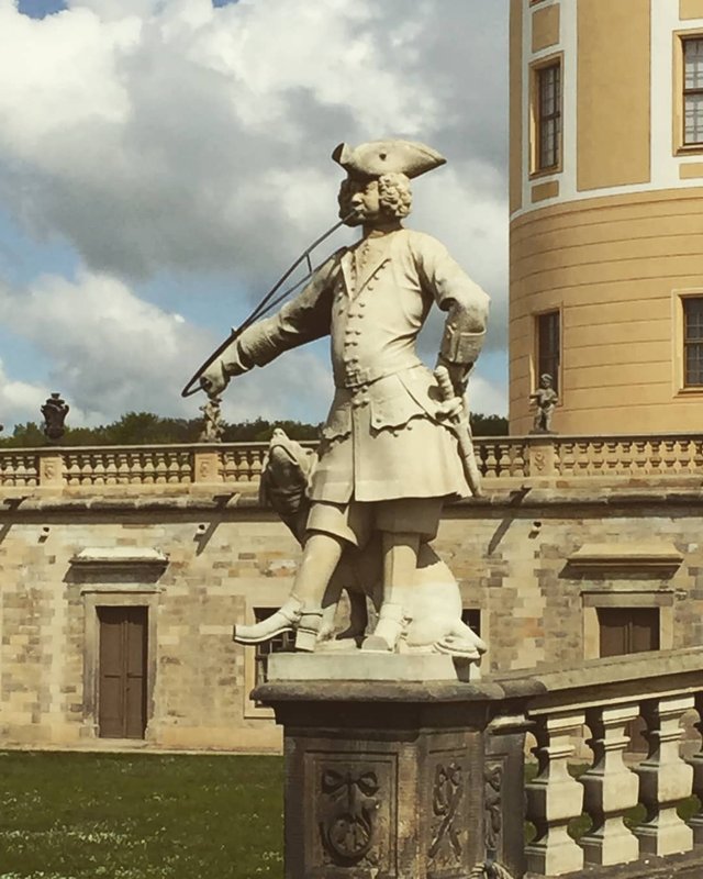 Am Eingang von Schloss Moritzburg wird man von dieser Statue begeüßt.