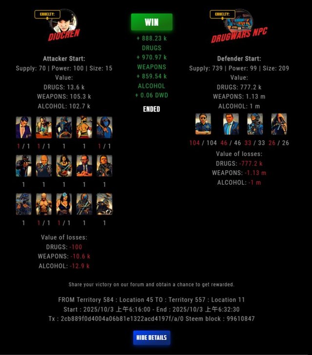 Check my latest fight ! diochen vs The Govermentdiochen (73)in DrugWars • 18 hours ago #drugwars-fight #gaming #fight #dw