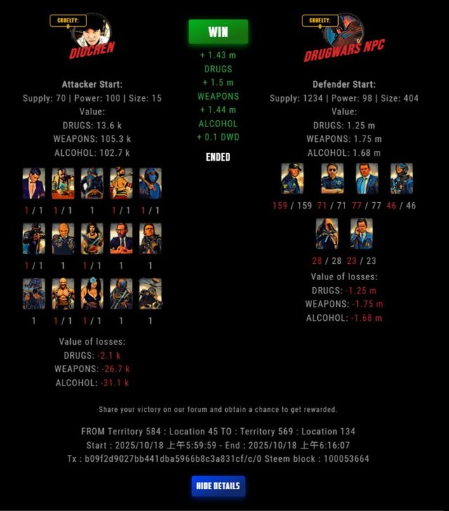Check my latest fight ! diochen vs The Govermentdiochen (73)in DrugWars • 14 hours ago #drugwars-fight #gaming #fight #dw
