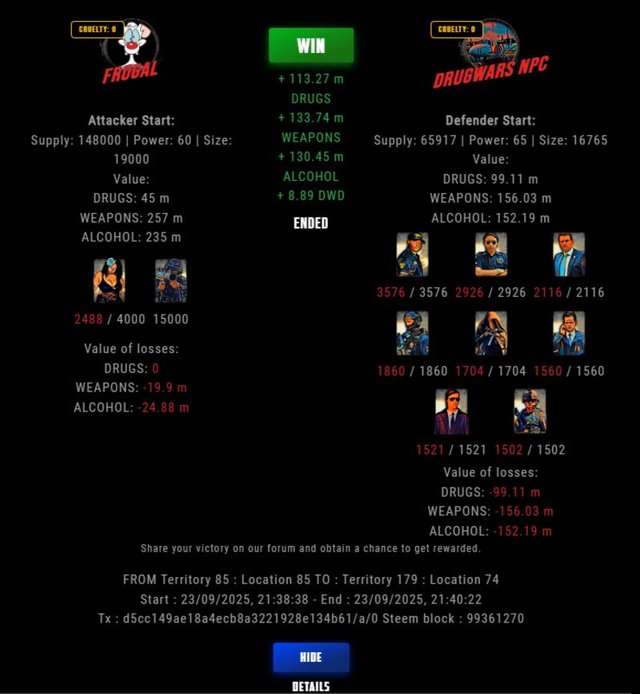 Check my latest fight ! frugal vs The Govermentfrugal-fun (65)in DrugWars • 16 days ago #drugwars-fight #gaming #fight #dw