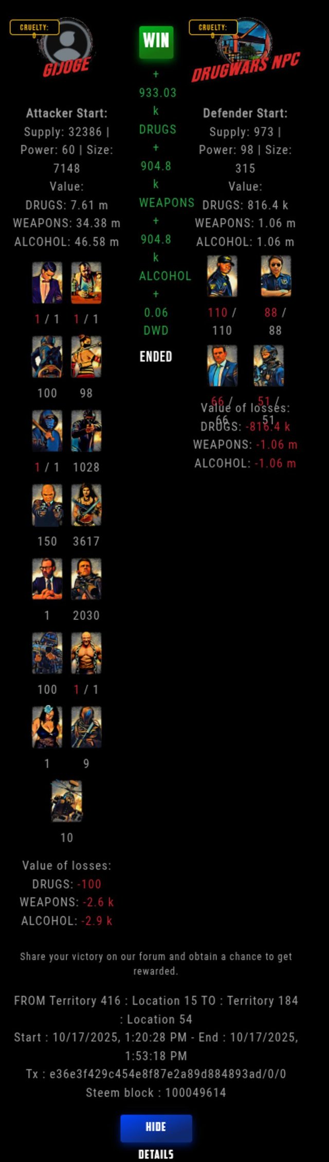 Check my latest fight ! gijoge vs The Govermentgijoge (58)in DrugWars • 7 hours ago #drugwars-fight #gaming #fight #dw