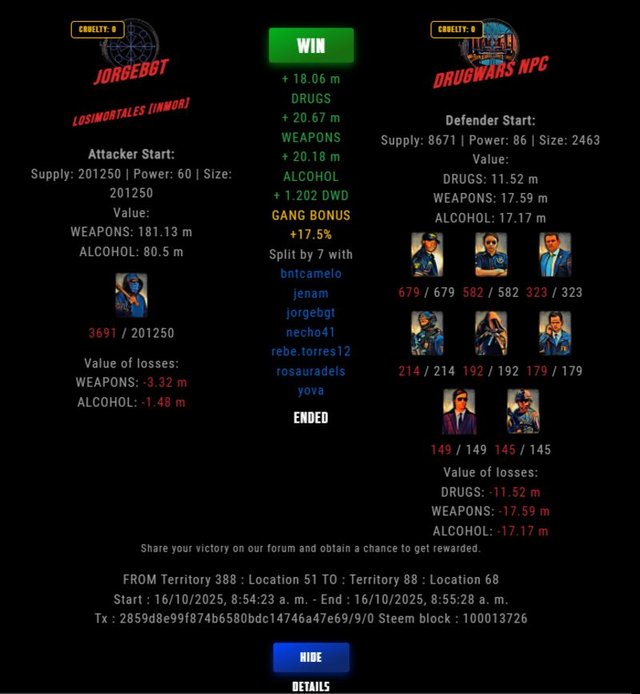 Check my latest fight ! jorgebgt vs The Govermentjenam (62)in DrugWars • 2 days ago #drugwars-fight #gaming #fight #dw