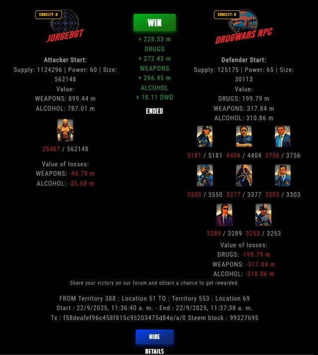 Congratulations @jorgebgt ! Your fight received an upvote of 71.5% from the Dealer as incentive for your activity and as a gratitude for your support to the game.