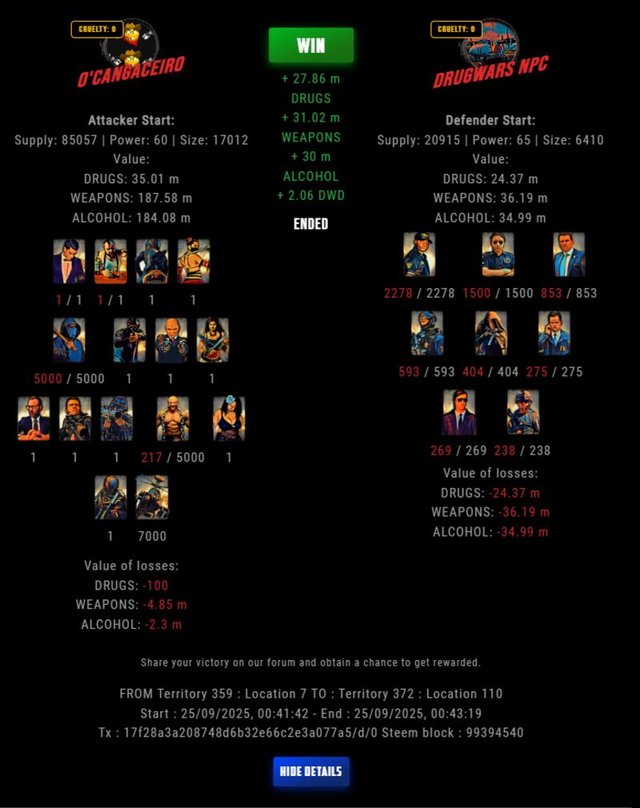 Check my latest fight ! o'cangaceiro vs The Govermentlastravage (67)in DrugWars • 8 days ago #drugwars-fight #gaming #fight #dw