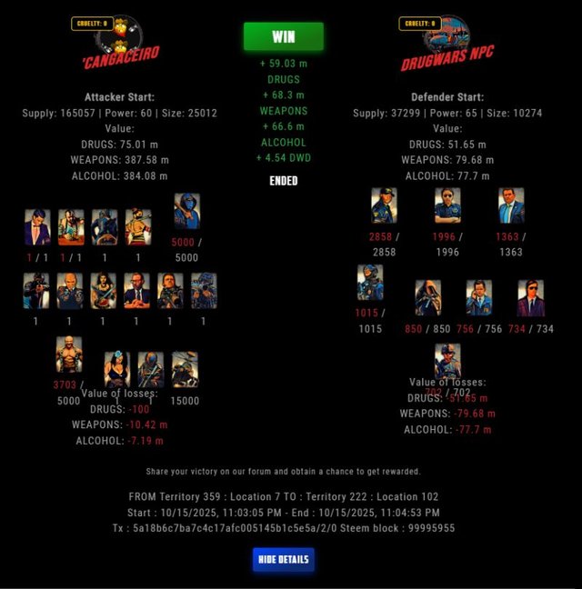 Check my latest fight ! 'cangaceiro vs The Govermentlastravage (67)in DrugWars • 3 days ago #drugwars-fight #gaming #fight #dw