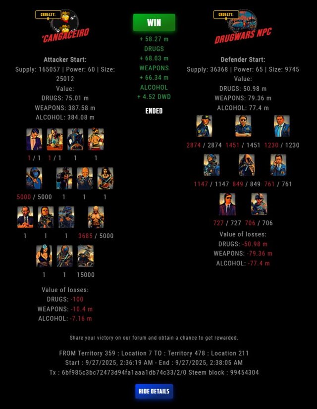 Check my latest fight ! 'cangaceiro vs The Govermentlastravage (67)in DrugWars • 9 days ago #drugwars-fight #gaming #fight #dw