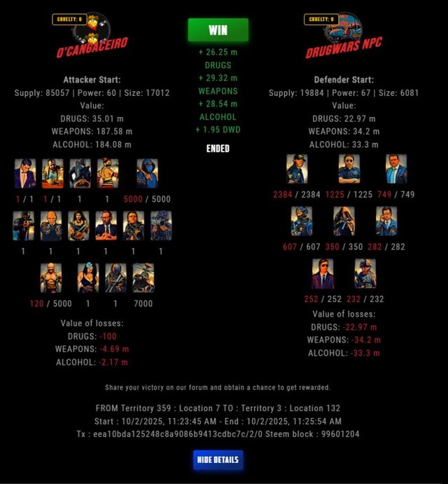 Check my latest fight ! o'cangaceiro vs The Govermentlastravage (67)in DrugWars • yesterday #drugwars-fight #gaming #fight #dw