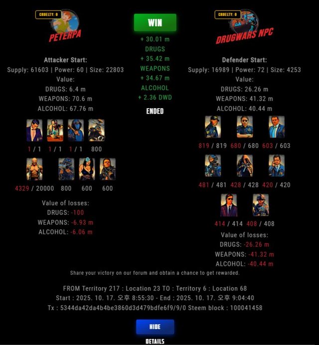 Check my latest fight ! peterpa vs The Govermentpeterpa (73)in DrugWars • 10 hours ago #drugwars-fight #gaming #fight #dw