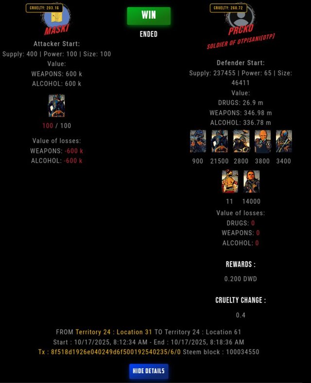Check my latest fight ! maski vs prckoprcko (60)in DrugWars • 15 hours ago #drugwars-fight #gaming #fight #dw