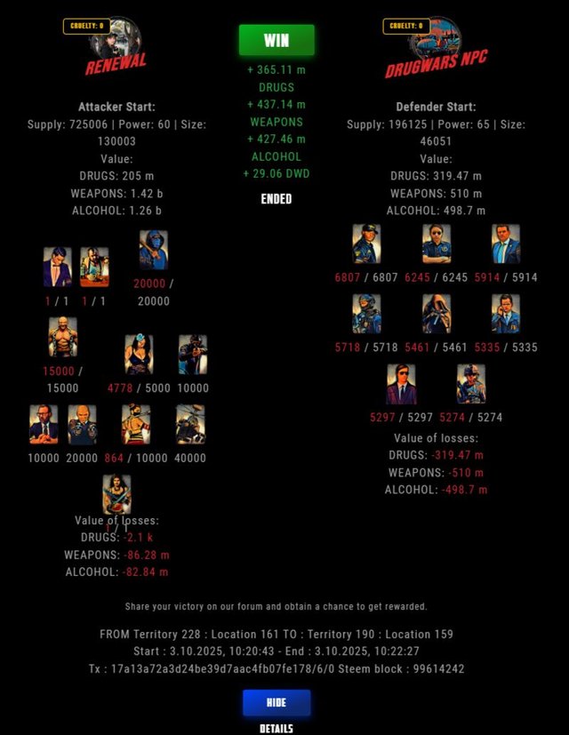 Check my latest fight ! renewal vs The Govermentrenewal (63)in DrugWars • 13 hours ago #drugwars-fight #gaming #fight #dw