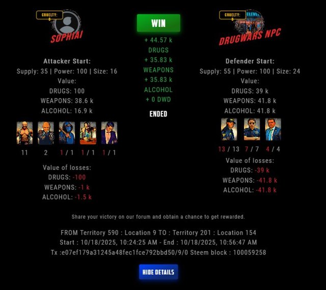 Check my latest fight ! sophiai vs The Govermentsophiai (35)in DrugWars • 12 hours ago #drugwars-fight #gaming #fight #dw
