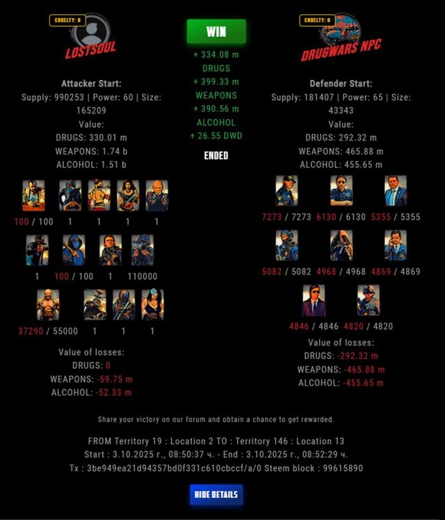 Check my latest fight ! lostsoul vs The Govermentstefannikolov (67)in DrugWars • 18 hours ago #drugwars-fight #gaming #fight #dw