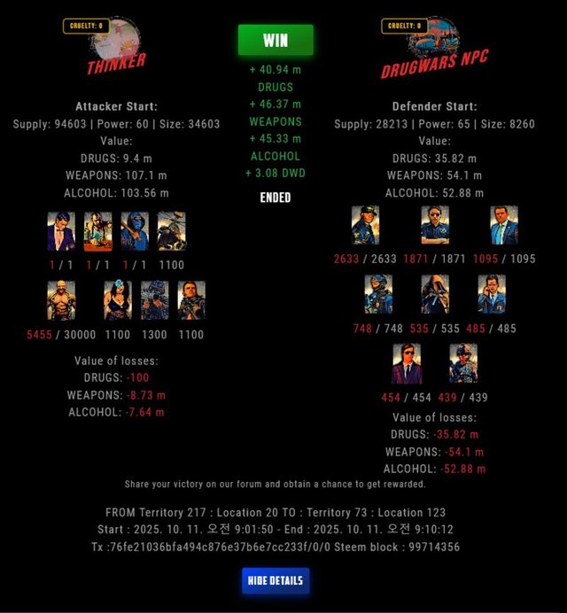 Check my latest fight ! thinker vs The Govermenttinker-bell (67)in DrugWars • 5 hours ago #drugwars-fight #gaming #fight #dw