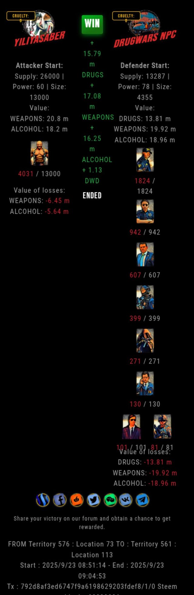 Check my latest fight ! yiliyasaber vs The Govermentyiliyasaber (69)in DrugWars • 11 days ago #drugwars-fight #gaming #fight #dw