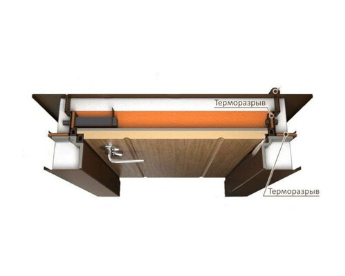 Входные двери такого типа имеют многослойную структуру. Снаружи и изнутри располагаются стальные листы, а между ними — утеплитель, чаще всего базальтовая или минеральная вата. Ключевой элемент — полимерная или композитная вставка, проходящая по всему периметру полотна и коробки. Дополнительно устанавливаются два или три контура уплотнителей для надежной герметичности.