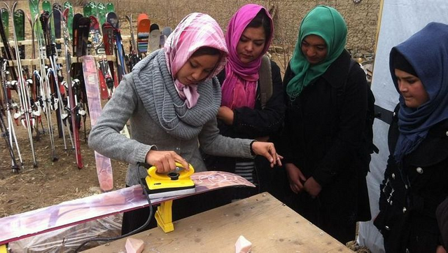 Slowly, these Hazara girls began to train under Henriette's guidance. Quite a long time and frustrating, but ultimately they can be basic skiing techniques.