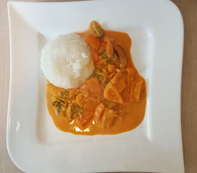 heute habe ich ein sehr leckeres und gesundes Gericht für euch, nämlich Jasmin-Reis mit einer leckeren Kokos-Curry Sauce.