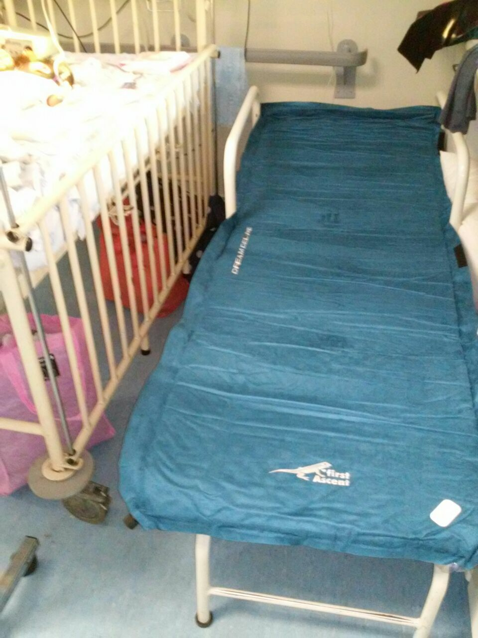 Sleeping over in hospital means that the chair that you sit in during the day is pulled out into a stretcher at night. Very uncomfortable, but better than other hospitals where I only had an upright chair. But exhaustion is a good sleeping companion; I soon learned to fall asleep immediately when I put my head down. Little luxuries from home like my own pillow, and inflatable matrass – the best buy ever- and a soft blanket made life easier.