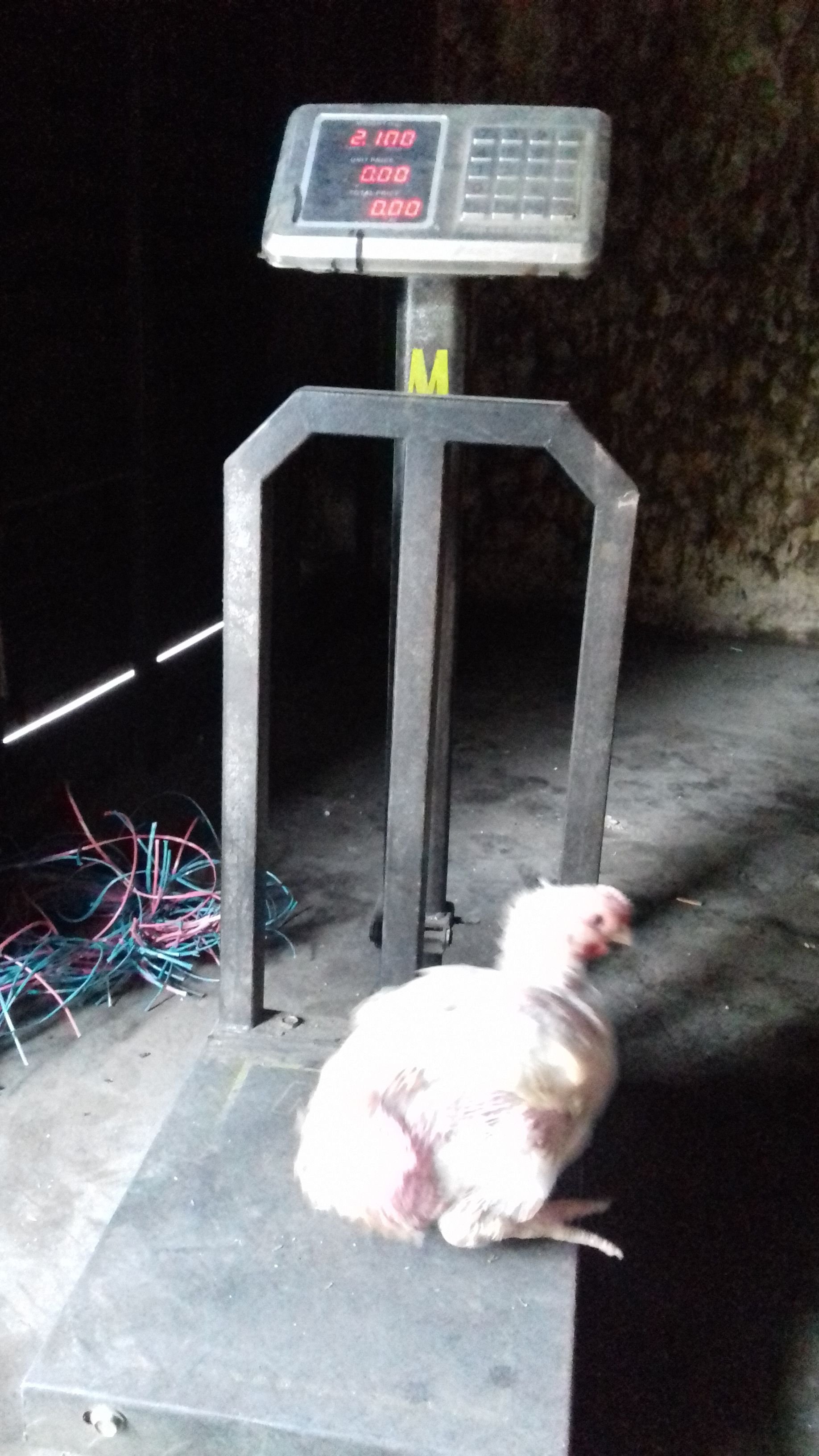 In the above pictures, we measured the weights of two chickens. First one weight was found 1440 grams and second one was found 2100 grams.