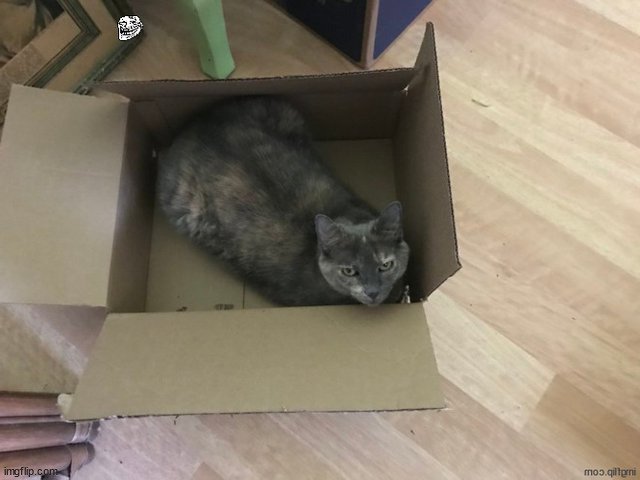 The ghost is above the cat box, it looks small in relation to the box and the cat of course