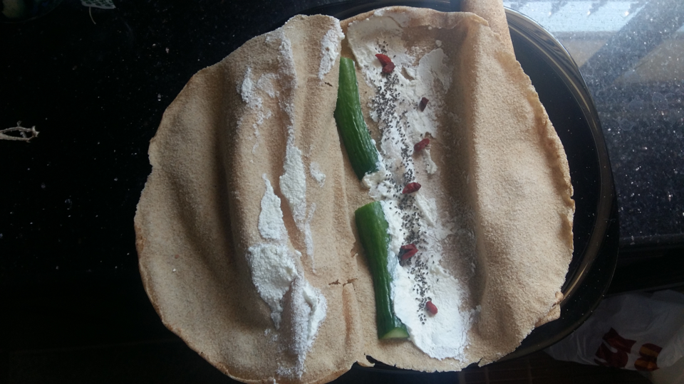 Today's breakfast involved a couple of the now famous among my followers Arabic bread sandwiches.