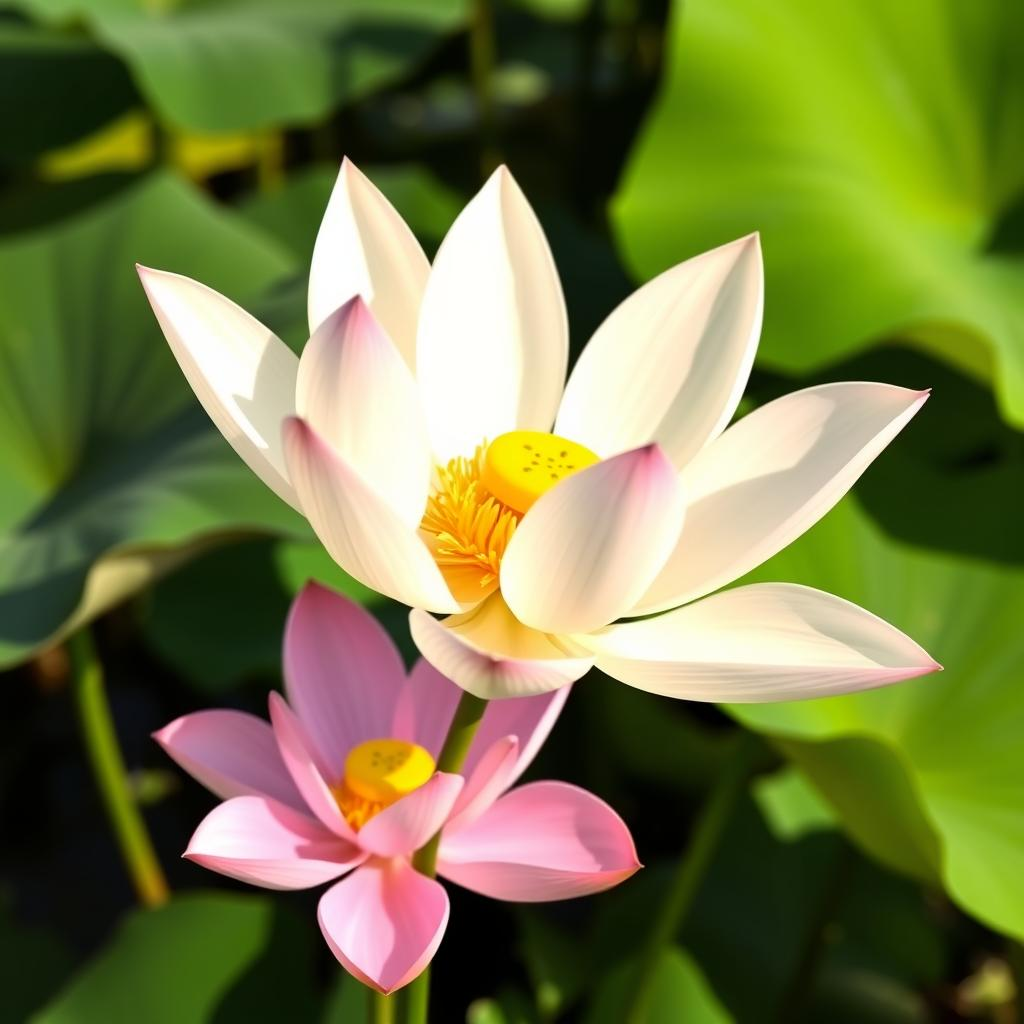 Originating in parts of Africa and Asia, the white lotus thrives in still, warm waters. Its large, round leaves float serenely on the surface, providing a canvas for the star of the show: the flower itself.