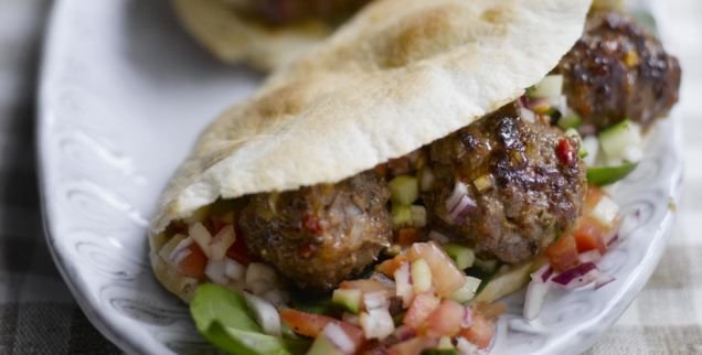 Grate pita bread in a pan or toaster without oil. Spread the eggplant you like. Place the tiny meatballs you have fried with tomatoes. Pour the filtered yogurt, sprinkle with chopped parsley. Serve immediately without waiting.