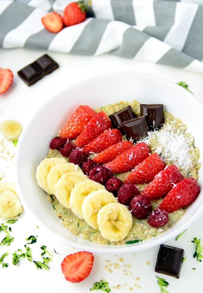Would never have thought to add zukes to oats, or any breakfast really- it's genius! The photos are amazing! Love the contrast between the pale green oats and the red berries. Might actually get me to eat oatmeal with this one!