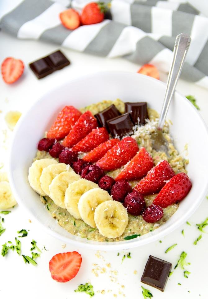 This new trendy breakfast is super easy to prepare, just grate up a zucchini and add it to your morning dose of porridge. Mix all with milk (I have used almond milk, but feel free to use any milk or even water), cook or microwave until all combined and tender. Flavor your zoats with cinnamon and vanilla, plus add some sweetener if you desire. Top the hot zoat bowl with your favorite topping. Add some chocolate and you won't even notice the zucchini taste! Enjoy!