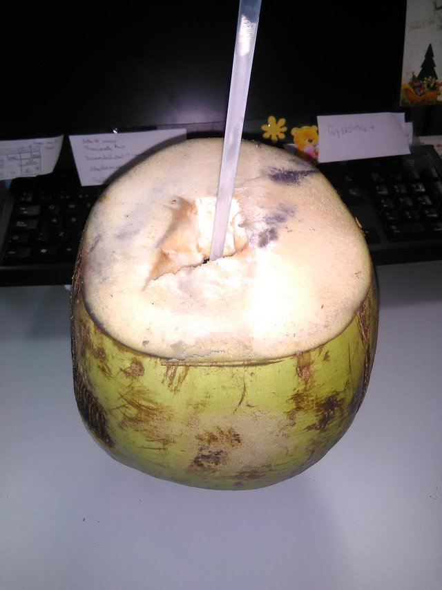 It consumes the fresh coconut water, direct from the natural source, not bottled, since it contains persivantes and generally already has lost great amount of the vitamins during its storage.