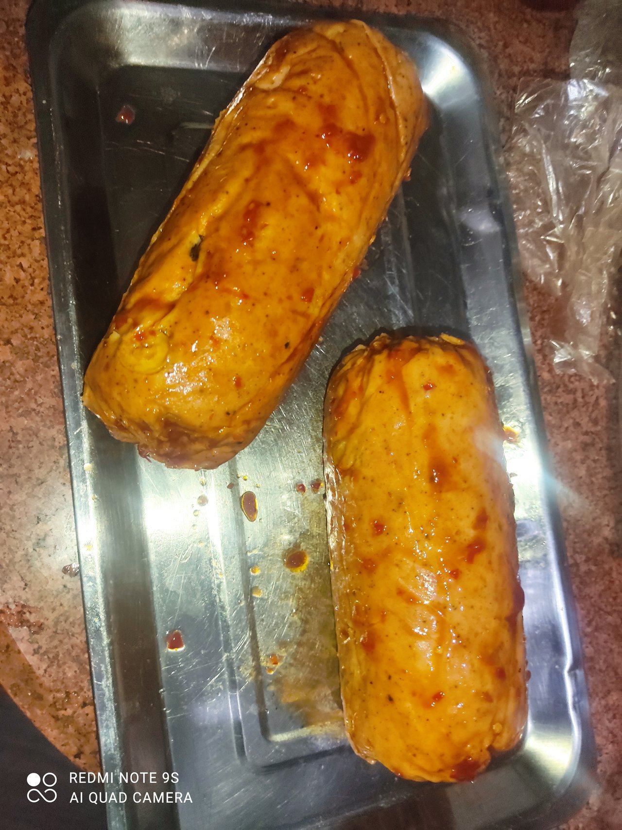 لقطع متوسطة ليسهل فرمها ونضع كوب نشا لكيلو دجاج وكوب زيت قلي وكوب ماء مثلجة مع مكعبات ثلج وتوم وبصل بودر وملح وبابريكا وفلفل أسود وإذا بنحب الزيتون بنقضع منه بس ننتبه نقلل من الملح لأنه الزيتون مالح ونضرب كل المكونات مع بعض ومن ثم نخرجها على كيس حراري ونغلفها على شكل اسطواني ونضعها بماء مغلي لمدة ساعة ومن ثم نخرجها نضع صينية وعليها فحم ووخشب وعيدان ونولعها ونضع فوقها شبكة ونضع اللانشون عليها للتدخين قبل ما نضعه بطبق صغير نضع صوص باربيكيو مدخن وفلفل احمر وزيت قلي وندهنها وضعها على الشبكة لندخنها ونغطيها وكل شوية نقلبها حتى لا تنحرق ومن ثم نضعها بالثلاجة ونقطعها وهي باردة حتى لا تتفتت معنا