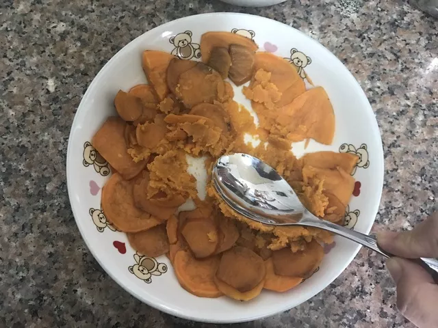 - 盘子涂少许油,把红薯饼放在盘子上。