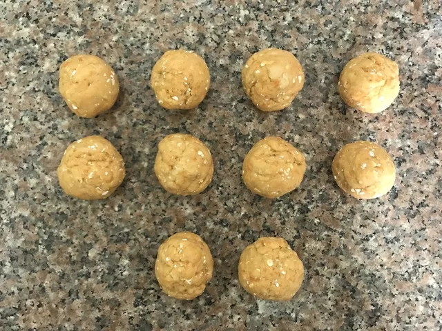 - 直至揉成光滑的面团,表面白色粒状固体是燕麦。