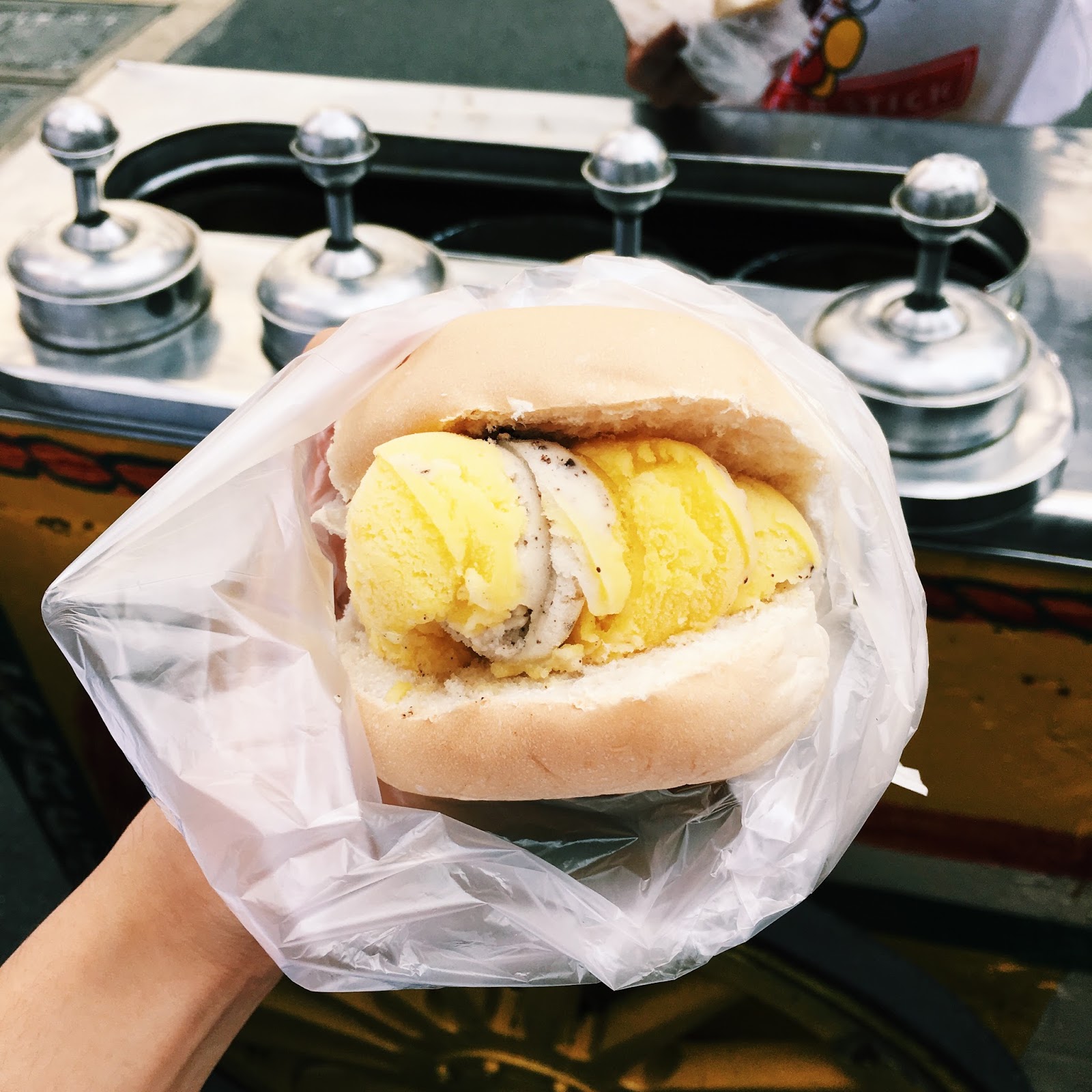and now here it is, the Ice cream burger! I don't know why i like it so much but something special happening to the ice cream when putted in the bread buns. Seriously, there is satisfaction in every bite I take, I really like this snack.