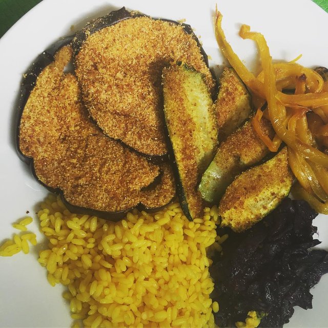 #share2steem #aubergine #yellowpeppers #rice #purplecabbage