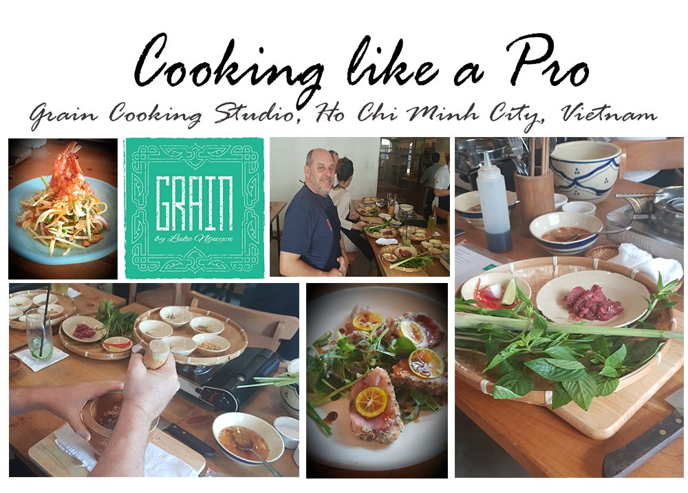 He also owns a cooking studio in Ho Chi Minh City - Grain Cooking Studio. So with a couple of days free in HCMC, I booked us into an afternoon of cooking Modern Vietnamese cuisine - with matching wines of course!