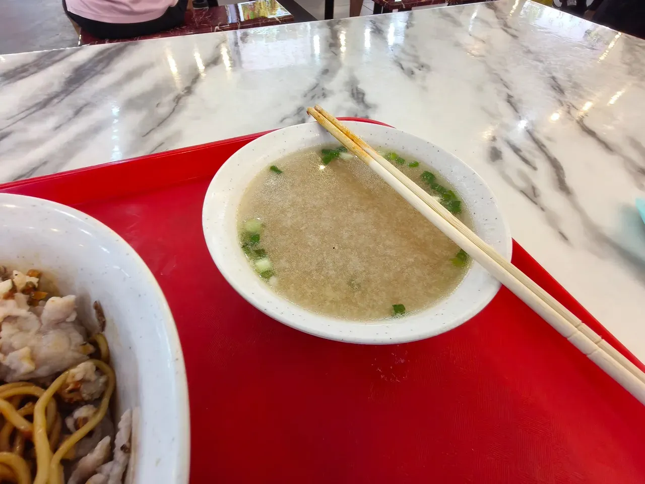And then there’s the bonus soup on the side. You know how some complimentary soups feel like a formality? Not here. This one tasted clean and savory with a rounded stocky flavor, the kind that makes you pause and appreciate that someone simmered bones, not just water and salt. I kept alternating, slurp of soup, chopstick twirl of noodles, and it turned into a very calm, very satisfying rhythm.