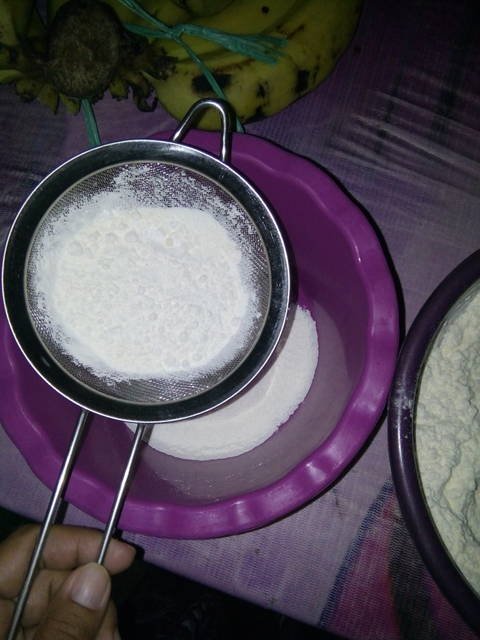3. then enter the flour that has been filtered, milk, Banana, salt and vanilla stir again