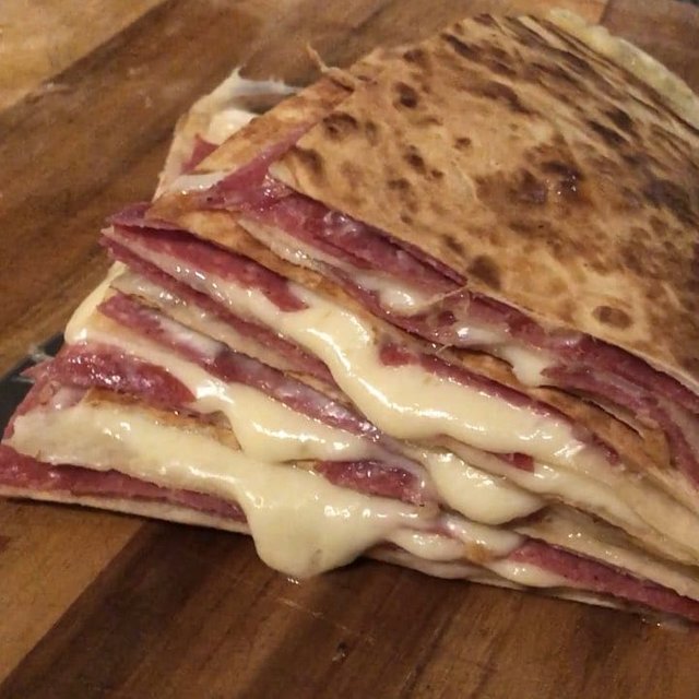 Enough Salami and Cheese? 🔥 🧀 🥩 🤤 Tortilla based Grilled Cheese 🔥 Gladiator Ravager Knife Chops it up 🔪.