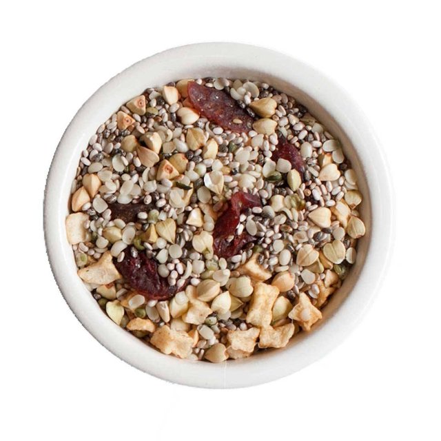 This award winning cereal appeared on one of my personal favourite shows, "Dragons' Den". This cereal claims to be "the world's most amazing" cereal. It is gluten free, kosher, high in fibre, organic, non-GMO (non-genetically modified organism), source of omega-3 & 6, and each bag contains 225g (8 oz.), good for 8 servings. This cereal has also received the "Health Check" by the Heart and Stroke Foundation.