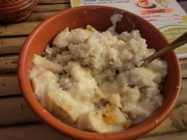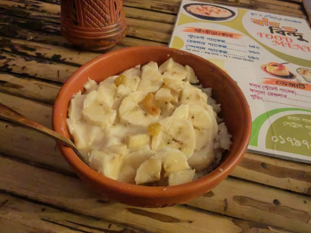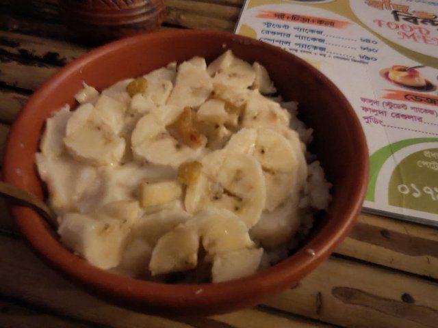 A delicious dish has been prepared, which can be seen here. This dish was made by cutting bananas and adding powdered milk. It is a very tasty and delicious dish, and milk was poured on it, which made the dish even more enjoyable and nice.