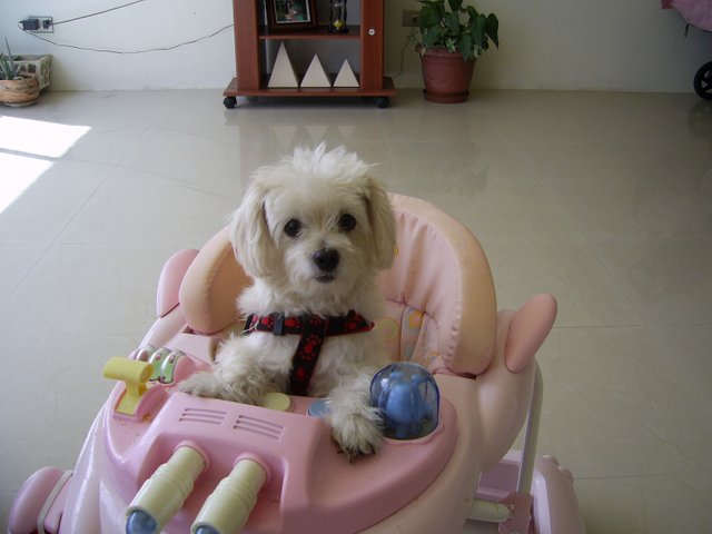 Puqui es un perro gruñón, un poco quizás por llegar a ser en sus primeros años el juguete de todos en la familia, el peluche que provocaba abrazar y alzar, y volver a abrazar hasta que el exceso de mimo lo empezó a amargar. Después de tener a mi beba, tuvo una crisis de celos que se tradujo en "marcar territorio" a cada momento y en todas partes, hasta el sol de hoy. Pasó de ser el peluche consentido que nos acompañaba a todas partes al perrito "meón" y mal humorado que en algún momento quisimos dejar en casa de mis padres por período de tiempo ilimitado. La crianza de un bebé junto a las nuevas mañas de Pú no eran compatibles.