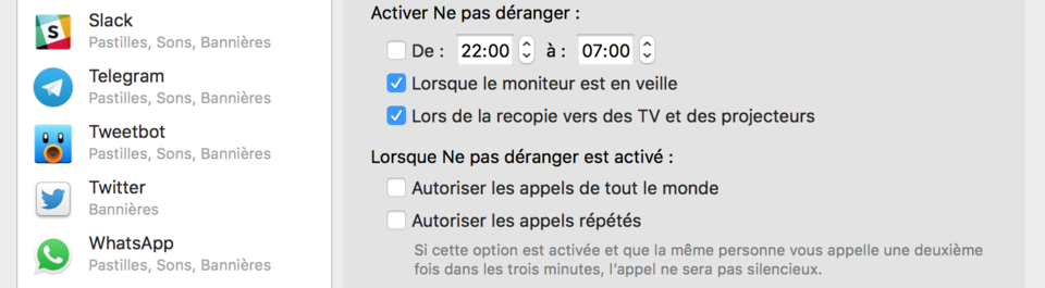 du Mac contiennent une option pour ne pas afficher les notifications quand vous projetez en réunion. Et rien que pour le fun, MuzzleApp que j'utilisais avant le fait aussi, et ca vaut le coup d'aller sur leur site pour voir les exemples !