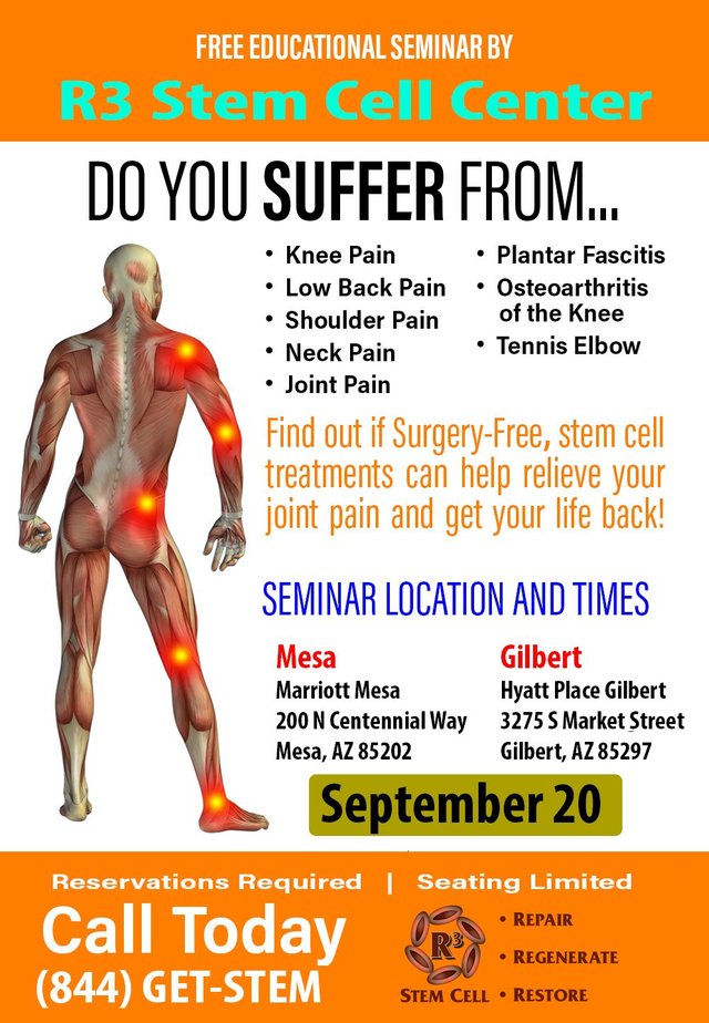 In this seminar, you will get detailed information from the experts about stem cell treatments. There is also an Questions And Answers session so you will tell your questions to expert and they will answer. Say goodbye to your chronic pain and other joint pain diseases.