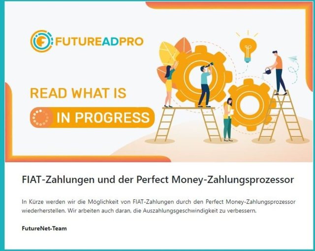 Wer es noch nicht weiß! FutureAdPro gehört zu Futurenet und ist eine Werbeplattform wo Du für 10 oder 50$ Werbeeinblendungen kaufen kannst und durch das tägliche ansehen von mindestens 10 Werbeanzeigen anderer User, bekommst Du einen Cashback von 120%. Jedes Adpack läuft solange bis Du von 50$ wieder 60$ zurück bekommen hast.