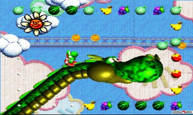 Gameplay: Gameplay is also simple. Yoshi’s Story, like its predecessor, is a platformer. The goal of each level is to eat a set amount of fruit to advance to the next level. You will also find coins and Special Hearts scattered across the level. These, alongside eating fruit and keeping your happiness level up, will improve your overall score once the level is completed. Getting hurt will reduce your happiness level, which acts as your health, and if it drops to zero, your Yoshi is gone. Eating fruit restores your happiness level, and eating a Heart Fruit makes you so happy your happiness level is maxed out and you become INVINCIBLE!!!
