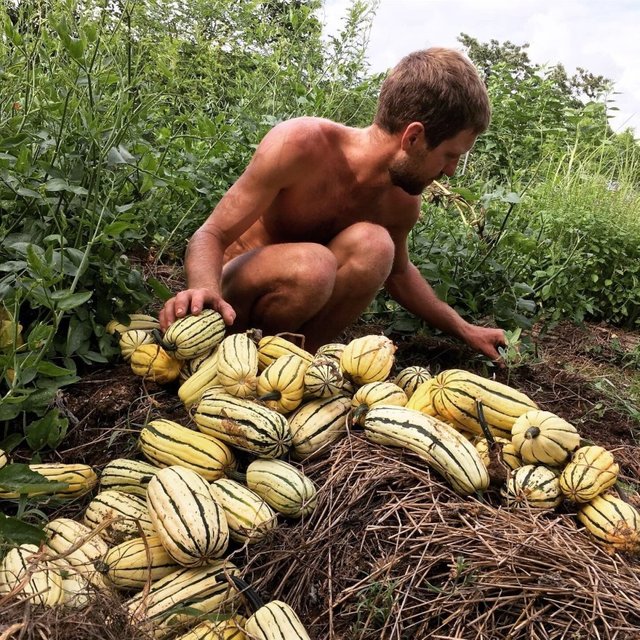 In past years the only winter squash that yielded any fruits were the ones that volunteered in the compost pile. This year we've planted many squash family friends from a variety of species; moschata, maxima and pepo. Some of each have already succumbed to an early death due to squash bugs. What we did notice is that the plants that are least affected have the highest moisture and fertility and are notably more vigorous. By far the healthiest of all squash received the grey water from our outdoor kitchen.